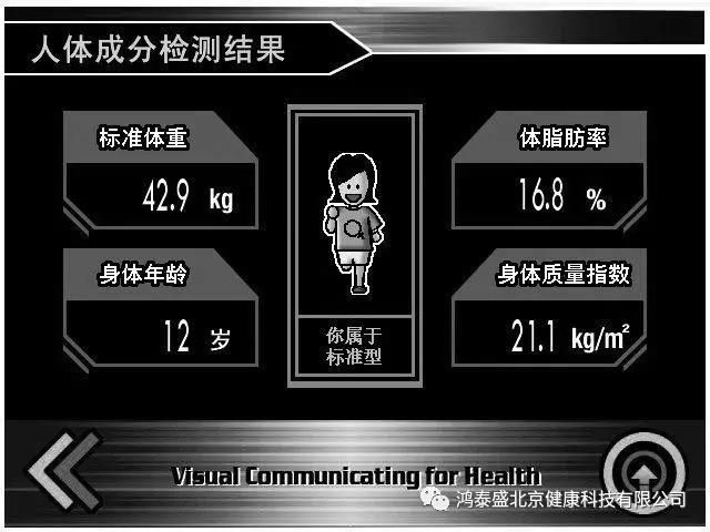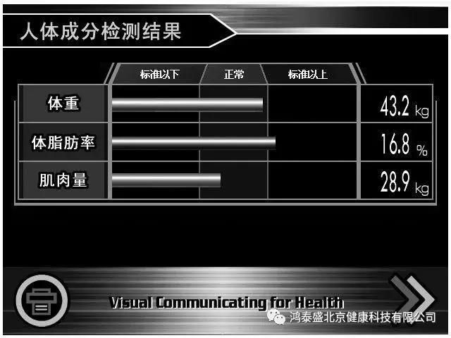 - 確認(rèn)顯示分析結(jié)果的圖形和數(shù)值后,按“打印”或“下一步” 重、身體年齡等。